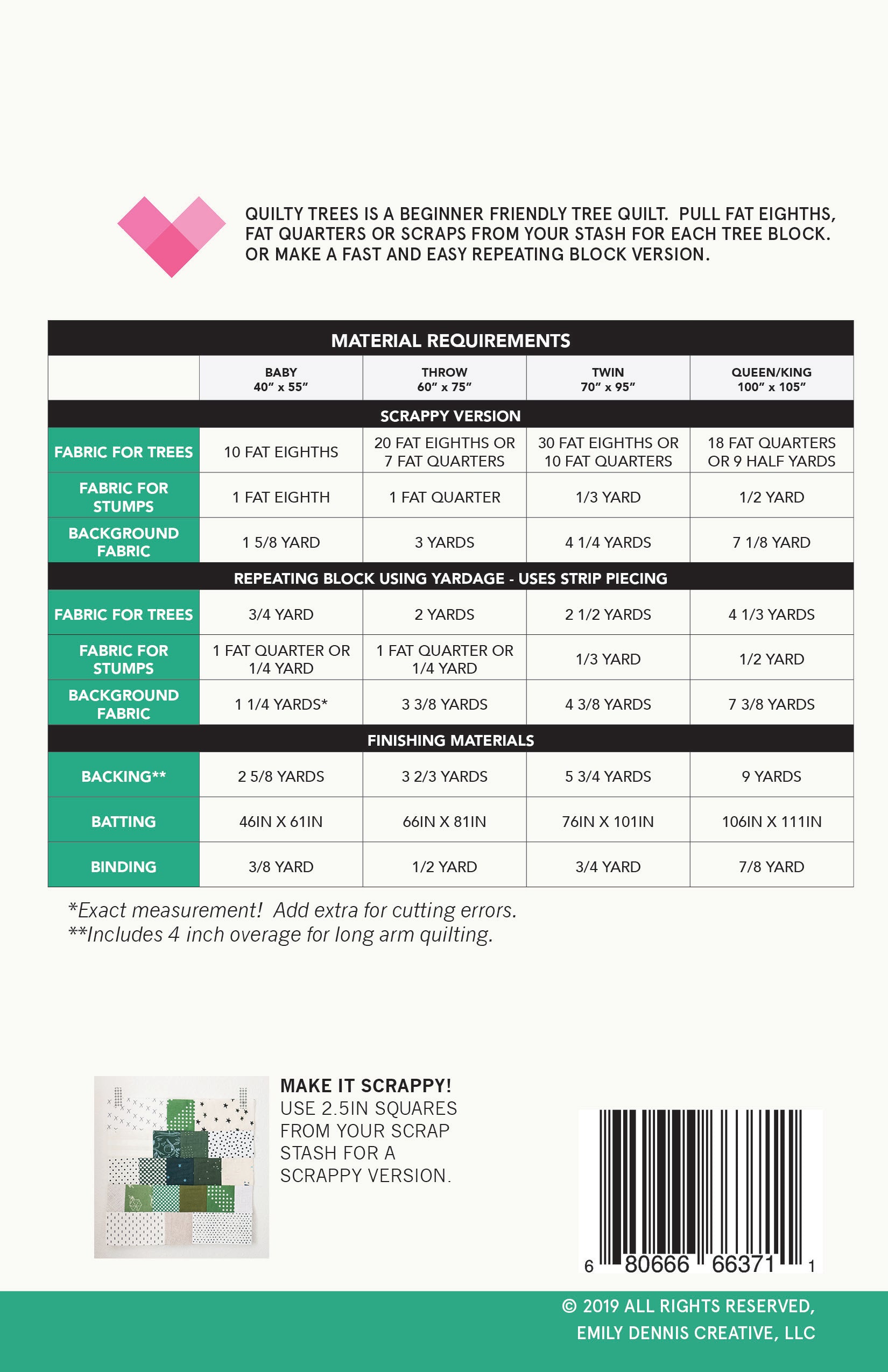 - Instructions included for both a solid tree block and a scrappy tree block.
