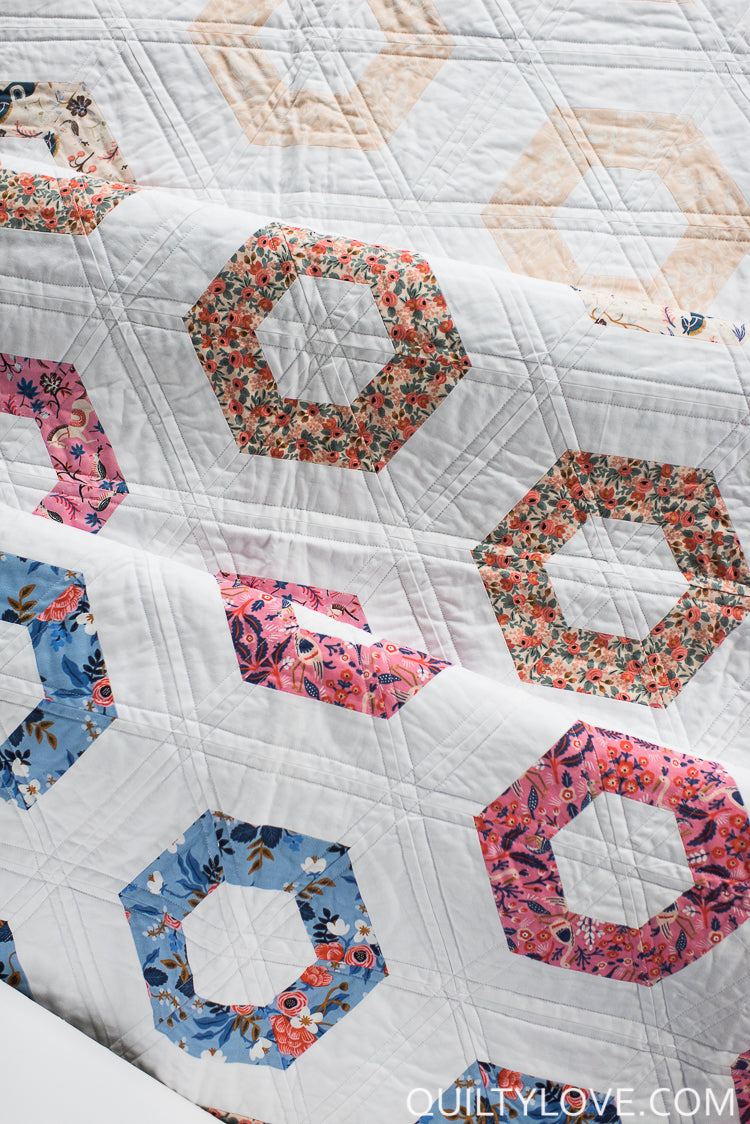 Hexie Rows Quilt Pattern by Emily of Quiltylove.com.