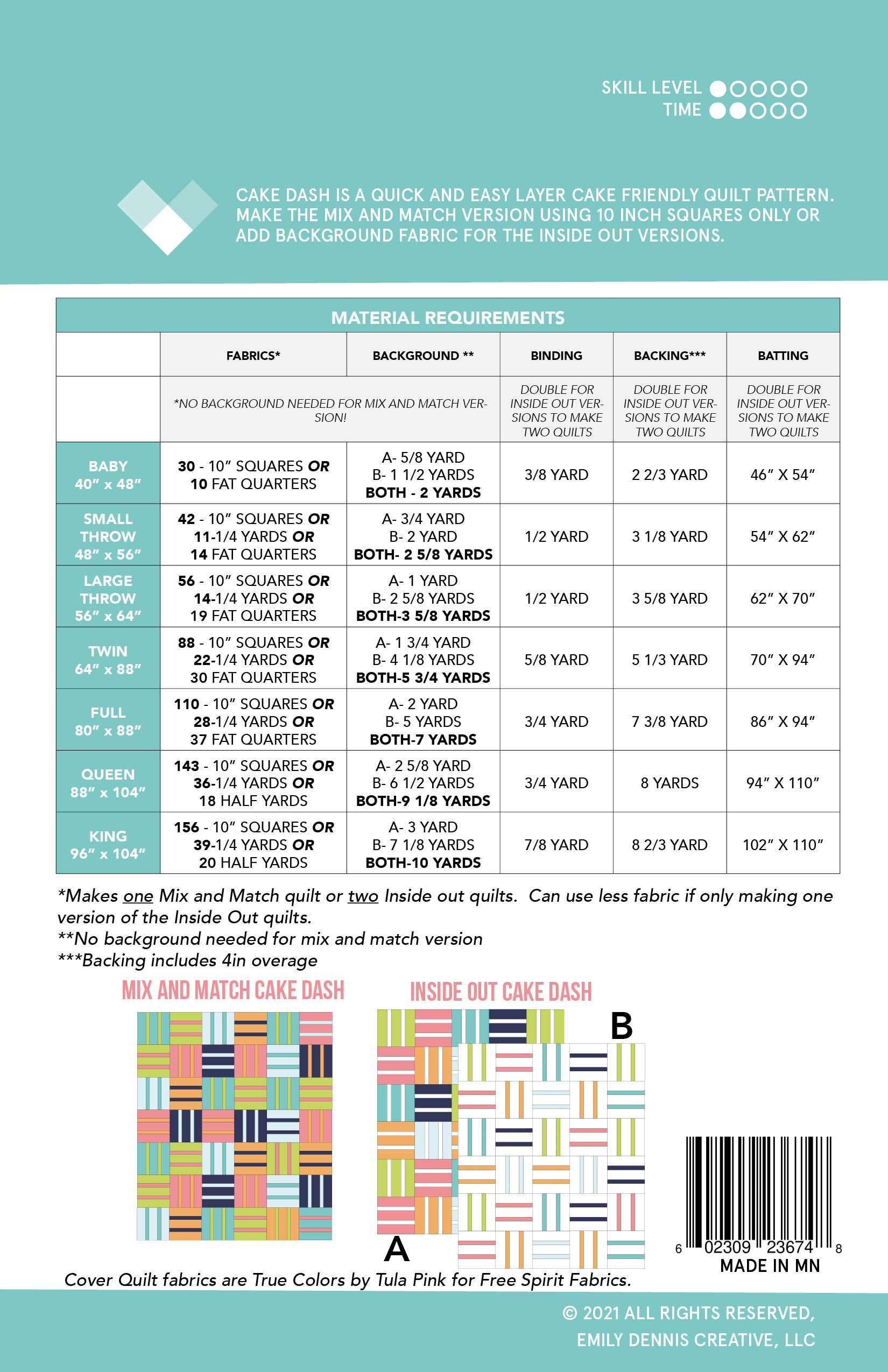 Cake Dash is a fast and easy layer cake friendly quilt pattern. Great beginner quilt. The pattern includes multiple sizes and options.