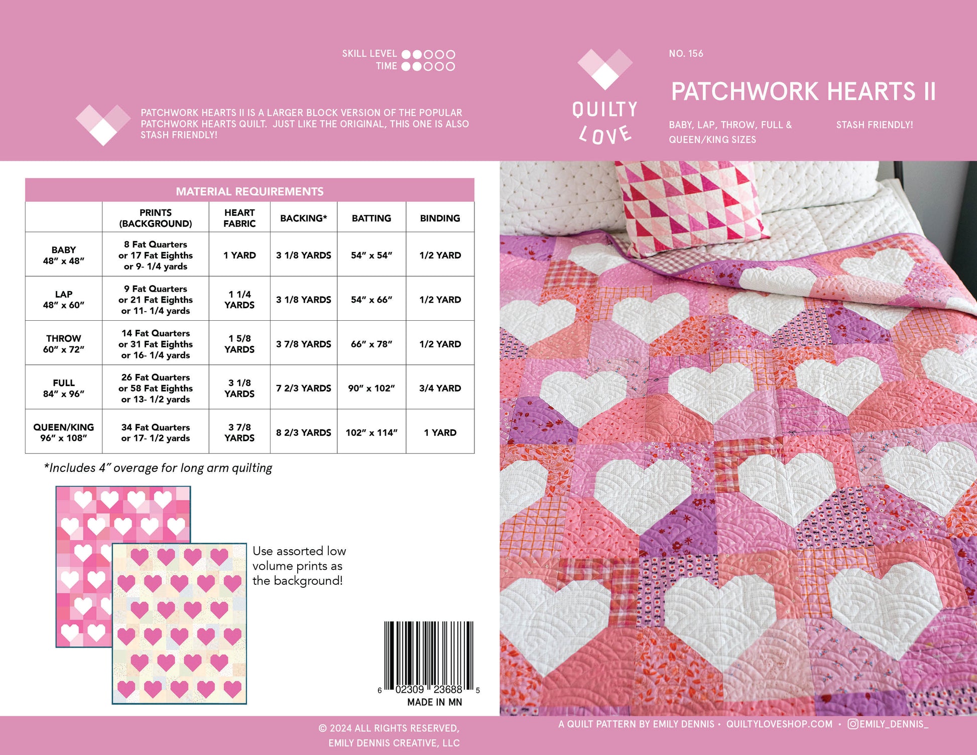 This quilt pattern bundle includes both of the popular Patchwork Hearts Quilt Patterns. The original Patchwork Hearts pattern has smaller blocks and more hearts. Patchwork Hearts II has a bigger block for a quicker finish.